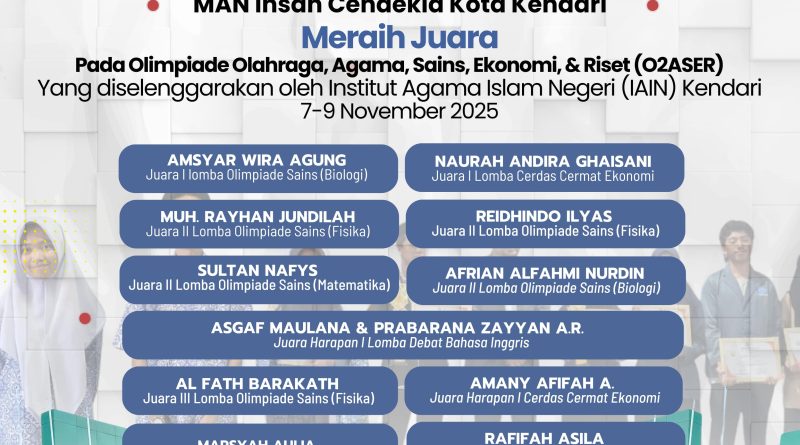 Read MoreKendari, (Humas Sultra) — Kakanwil Kemenag Prov. Sultra, H. Muhamad Saleh melepas dua Siswa MAN Insan Cendekia Kendari untuk mengikuti