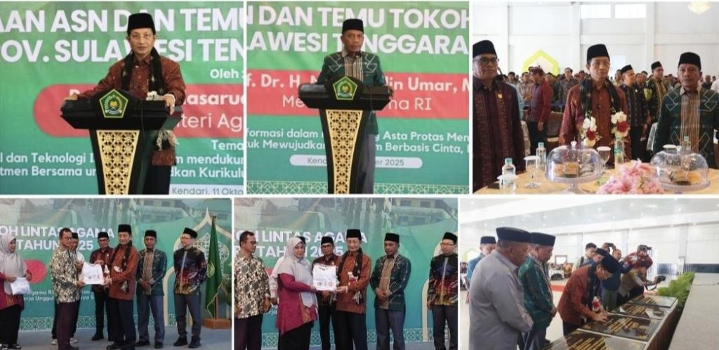 Kendari, (Humas Sultra) — Menteri Agama RI, H. Nasaruddin Umar memberikan Pembinaan ASN dan Temu Tokoh Lintas Agama se Provinsi Sulawesi Tenggara Tahun 2025, di Aula Asrama Haji Kendari, Sabtu (11/10/2025).